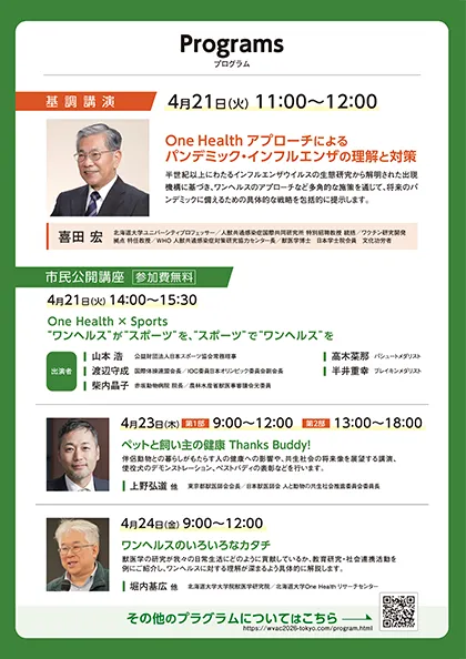 獣医学の最新知見と国際的な取組を共有する多彩なプログラムを実施します。